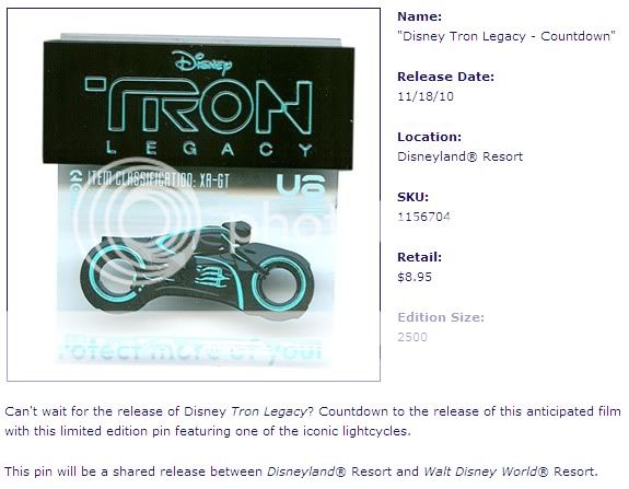 I definitely want one of those Lightcycle pins. Great for SDCC next year... The round TRON pin is sweet, too.