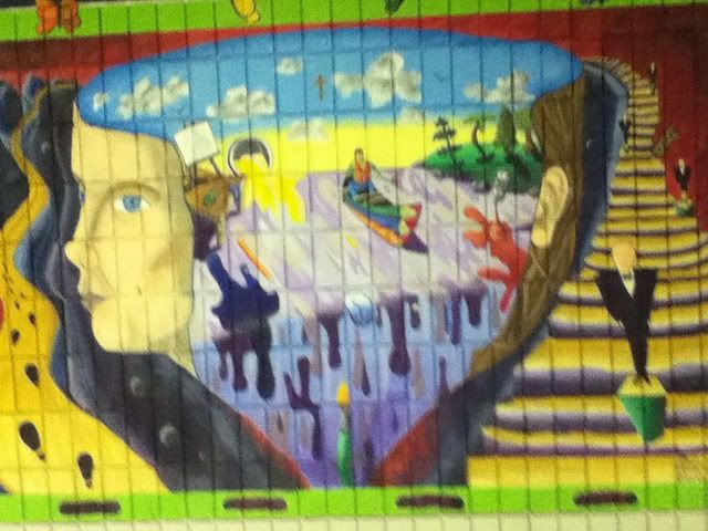 OKAY. Story time. I was walking down the hallway at school, and as I passed the art mural I did a double take, my heart hammering wildly because I thought the Slender Man had been lurking around the corner.