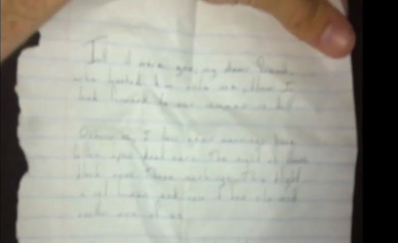 For informational purposes, here is the best screenshot I was able to get of the note as Vinny held it up to the camera.