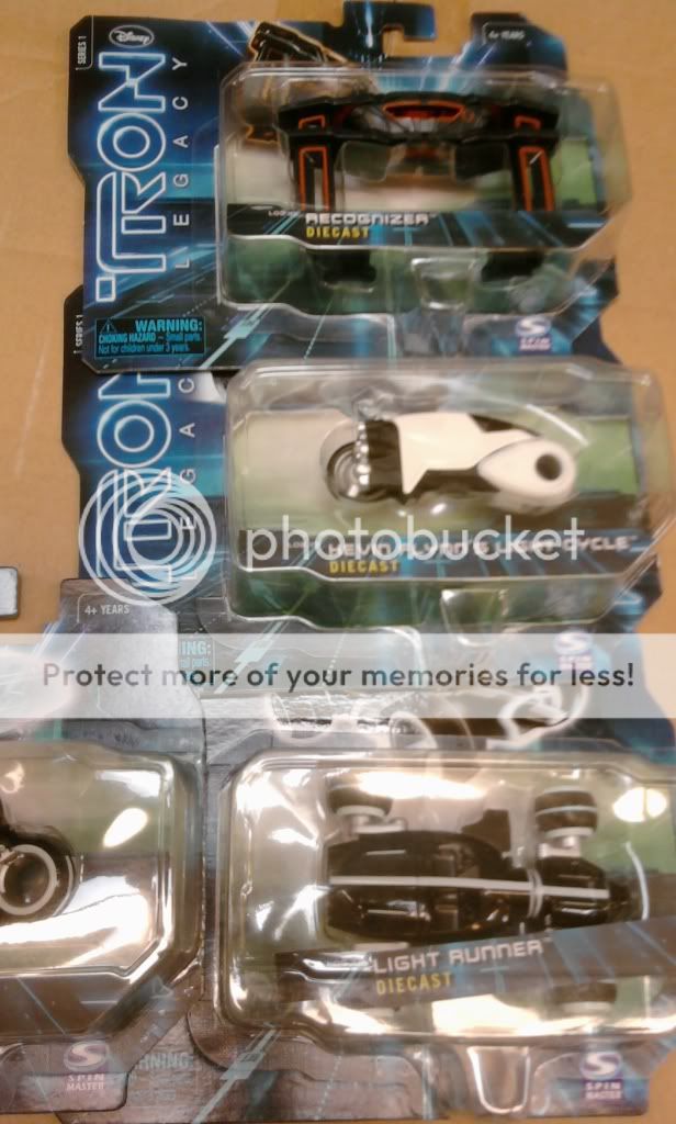 I couldn't find any figures; as predicted, psychic toy hunters cleared them out before I got there. I did manage to get Sam's Light Disc, Kevin Flynn's Light Cycle (large one) and the Light Cycle Pursuit set. I totally opened it up for me and my daughter to play with, but the die-cast lot is going in a display case :3