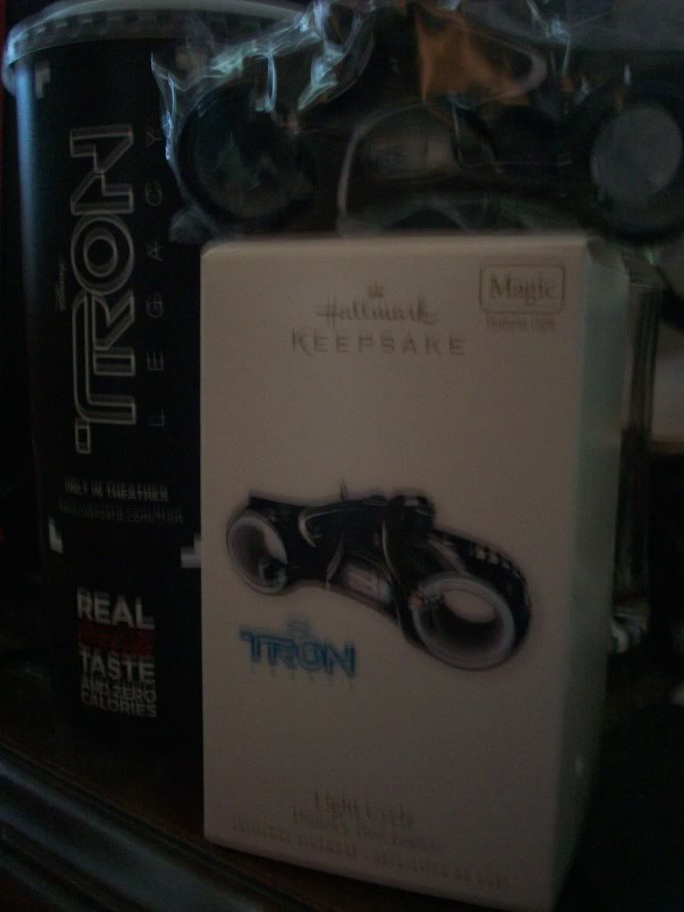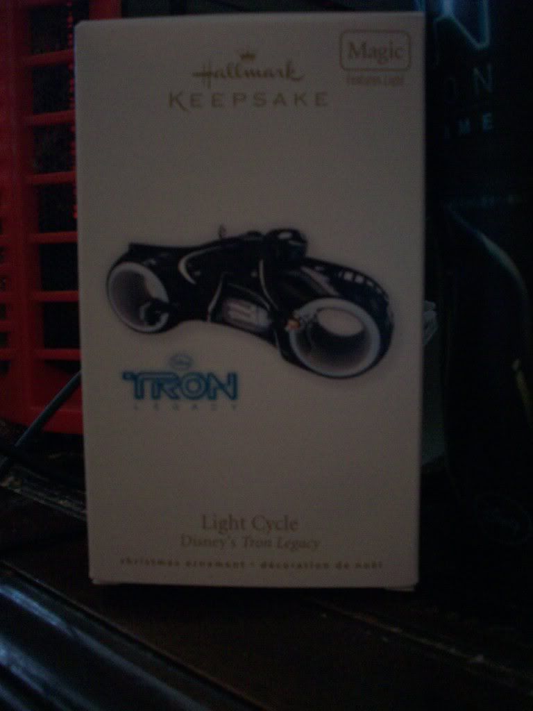 Hallmark Ornament. The ornament is Sam's lightcycle. I'm threatening to Tron my tree with rope lights much to my husband's horror.