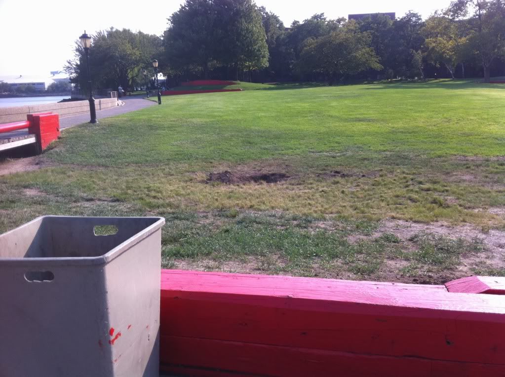 I went to Roosevelt Island today and saw a nice big lawn well kept except for a big hole in the ground by the lighthouse lol