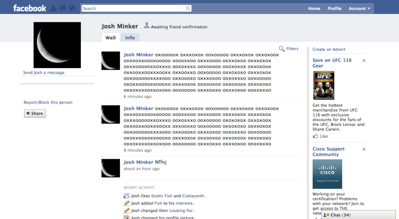 Josh Minker Status Update posted 3 minutes ago. and 5 minutes ago. double post.?