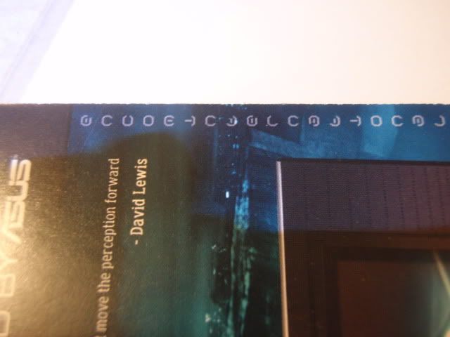 Has anyone noticed that there appears to be a line of code on the edge of the Tron: Legacy cards from ASUS? If you look on the back of the card and on the right hand side, it looks like a line of symbols. Could it be a code? Since it looks like there are cards with different characters, maybe each line of code is different? Maybe it's nothing, but I thought I should mention it...