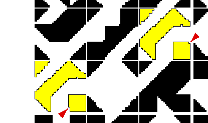 The easiest evaluation of sameness between two symbols (made up of binary colored pixels) that I can think of is to determine how many pixels differ between them. That is, one superimposes one symbol on top of the other and counts how many pixels are not the same color (this is made a little more tedious because symbols can be rotated and need to be checked rotated as well, but that's not a conceptual problem, it just creates 4 times as many comparisons Very Happy ). Because I already have the solution (thanks chancesend!) as to which symbols are the same (letters assigned so that each group of 'same' symbols is already defined), it was fairly easy for me to write code to evaluate this on a per letter basis. The two quantities I calculated are the maximum difference in pixels between all examples of each letter, and the minimum difference in pixels between any example of each letter and all examples of all other letters (effectively the upper limit difference of a positive match and the lower limit difference of a negative match). If the first quantity is much less than the second in all cases, then code that compares symbols on the basis of how many pixels they differ by, in combination with a properly chosen threshold difference in pixels could successfully match the 'same' symbols.