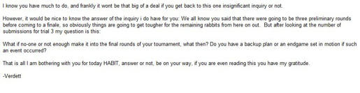 so i guess the unexpected did happen, he does bring up a point, no one knows what we will even get out of the trials XD