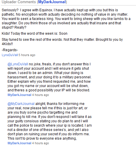 i normally just ignore most friend requests but the ONE TIME i decide to check out their channel...stupid idea. reminds me a lot of TTA though but MDJ really creeps me out DX and the fact that i am one of the "Chosen" (to my knowledge) REALLY creeps me out.