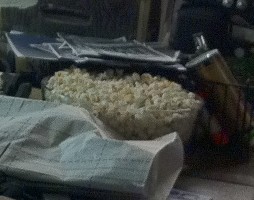 BTW, that's how you know it's fake...Zack couldn't possibly have an untouched bowl of popcorn. He's so ravenous, he eats Alan's! Wink