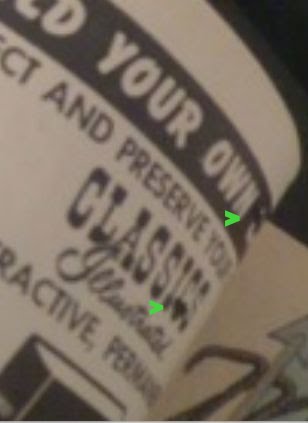 We did find a couple more of the blackened spots previously. I don't know how well they show up in this crop, but I used green arrows to point to the other two places with the black marks. They are on the L in library and the second C in classics. If we're supposed to use these marks to read something, we'll have to figure out what that something is too. Guess we need to look for more info in new posts and uploads.