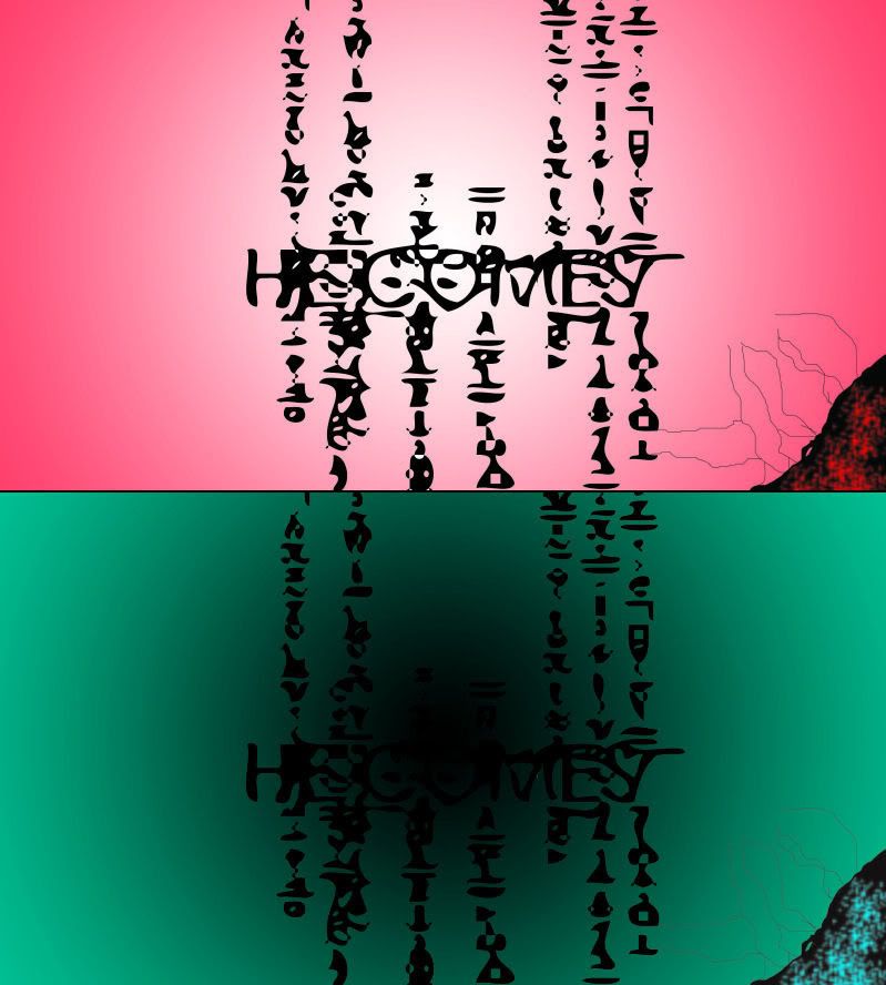 I do think that's Zalgo text, though, as well as the "He comes" part. I have no idea what the thing in the corner is, though...