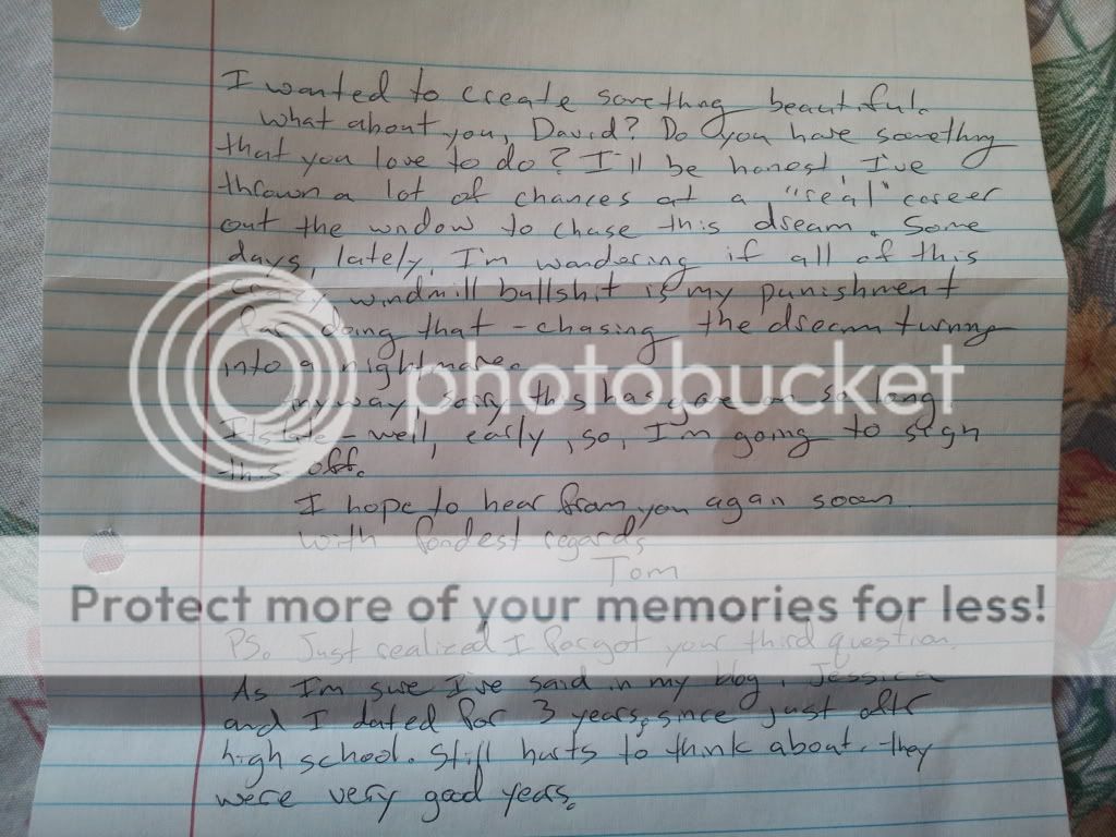 Mailing another letter to Tom today, and I sent an email two days ago. No reply yet.
