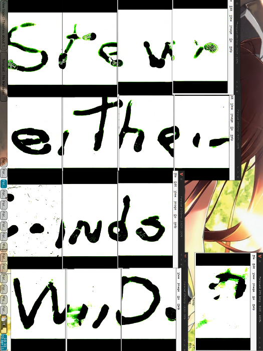 -The white frames, or rather what those weird words/letters are and what they could spell