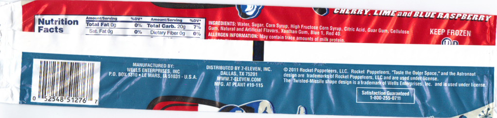 Ingredients: Water, Sugar, Corn Syrup, Citric Acid, Guar Gum, Cellulose