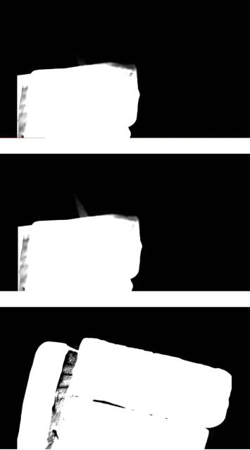 Also, I pulled and tried to clean up those "bench" images and they're going to be almost possible to restore without some heinous filtering, methinks. I did, however put the three best shots I could pull from the vid and fiddled with the contrast a bit. Only thing I really managed to do was pull up a fragment in the middle picture (which is now also faintly visible in the picture a few miliseconds before). To me, it looks like it could be a white edge line on the end of a road, making the bits below it the uneven edge of a dashboard of a car. (If you sort of look at the two shots and then look at the light/sign post picture posted a page previously -- they could be the same.)
