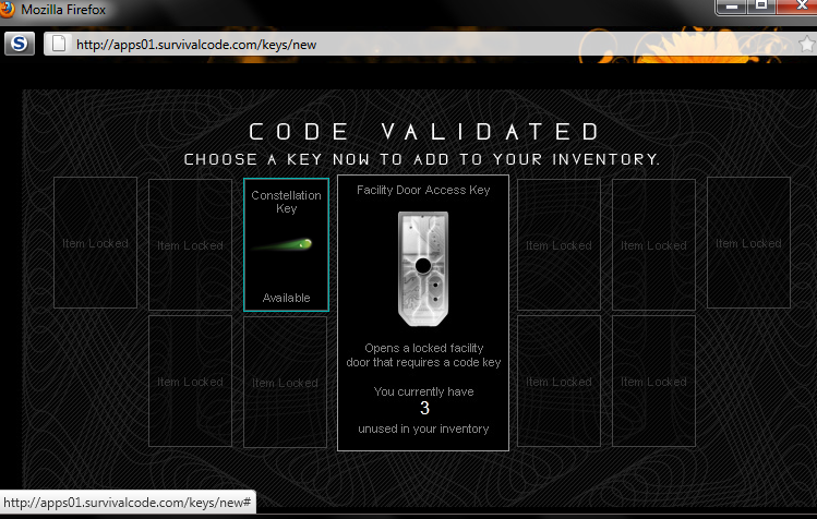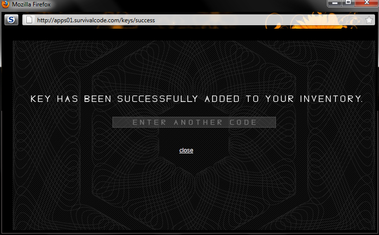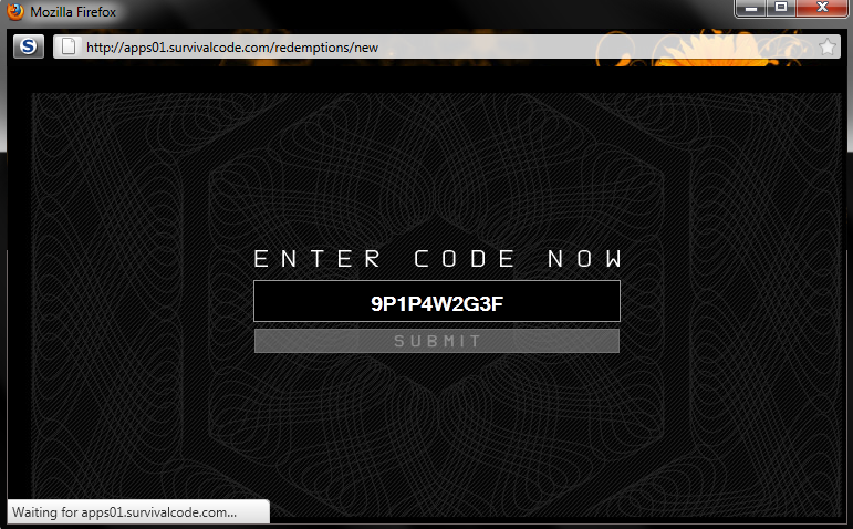 Thanks for your help! Actually, can you just paste the url? I know the one to redeem the code is http://apps01.survivalcode.com/redemptions/new , maybe I can just paste it in my browser and go to that screen.