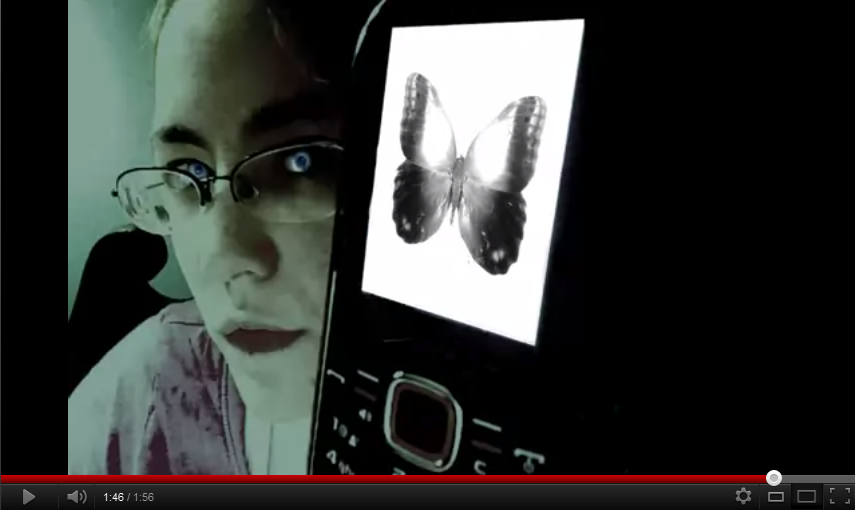One of the people seen flashing at the end (?), holding a mobile phone with a butterfly on...
