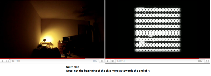 it is interesting to note that even though the skips don't make perfect sense with the totheark frames, there are still the same number of frames as there are skips in the video. (they both have 9)
