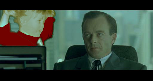 Hey! Wait! If you freeze-frame it, you can kind of see a reflection in the eyes. It looks like maybe a room, with a guy, a computer screen, and a camera!