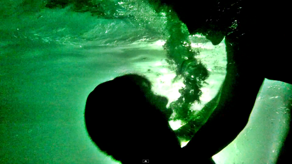 This image is backlit using GIMP.To me--it is quite evident that this is Evan attempting to drown Vince.I have several other caps but this one illustrates fairly clearly (within the boundaries and limitations inherent in the image) Evans profile with his sharp nose and eyebrow line,chin,lips and even the arms.