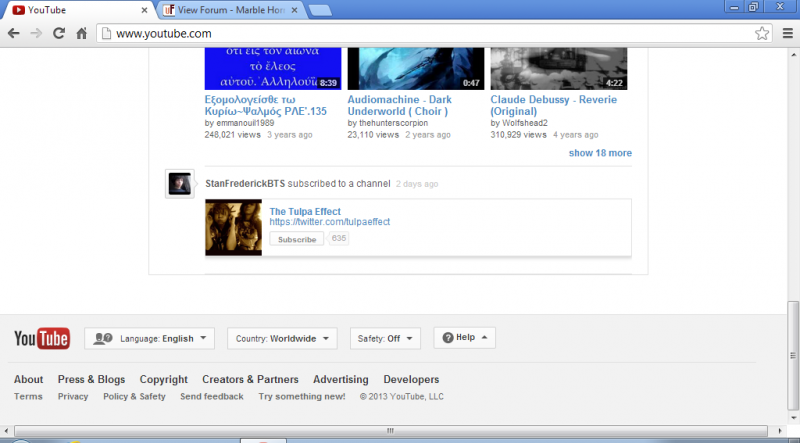 Notice that, it's also subscribed to MarbleHornets and other series from the Big Five, but I'm not crossing over with any of them. It's just my sort of hub for viewing new series, nothing more. I apologize for not clarifying that.