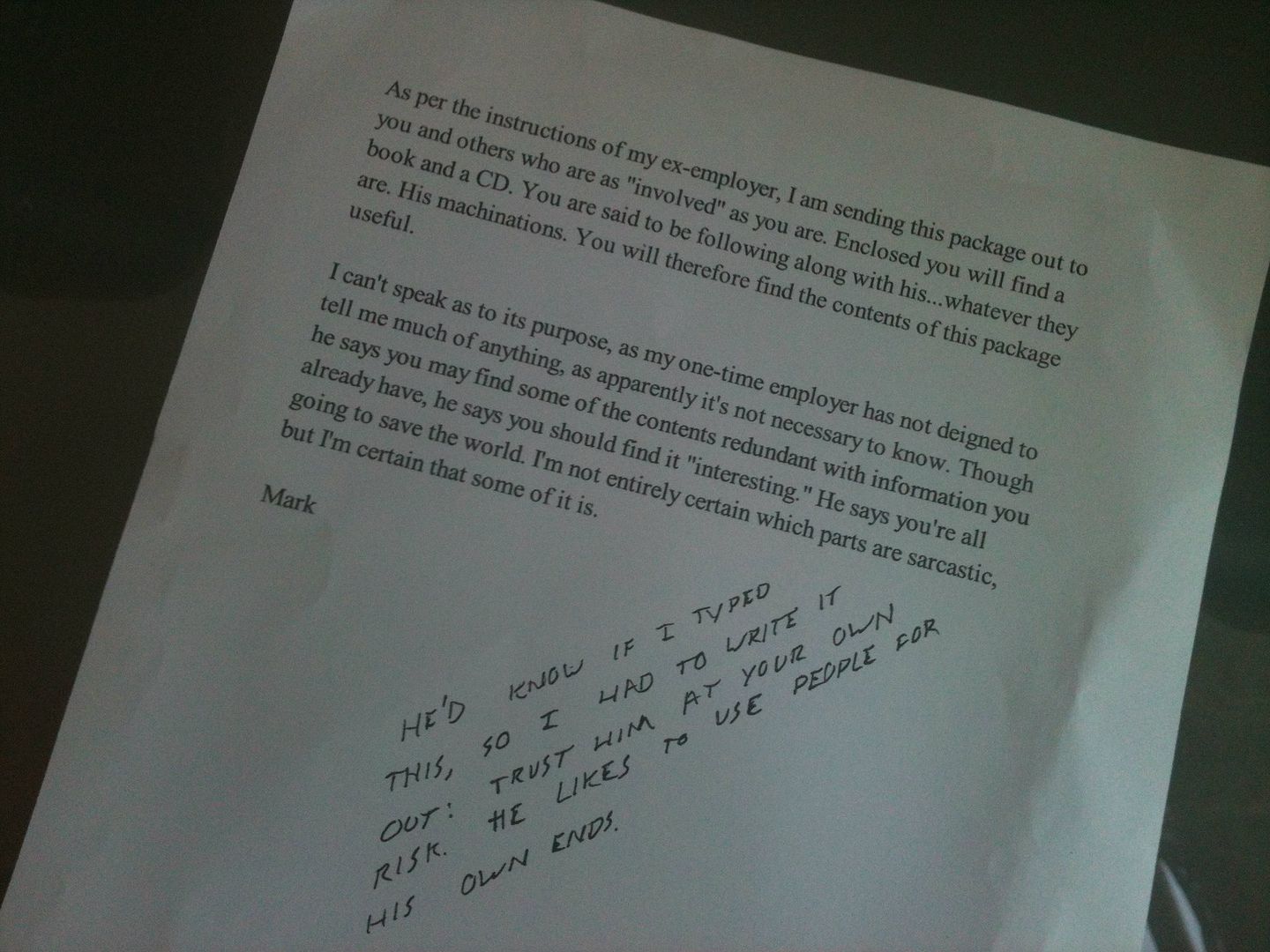 After reading through the thread yesterday, the first thing I noticed thanks to notgordian's link is that the letters are different. Mine was shorter, though they say about the same thing in the end.