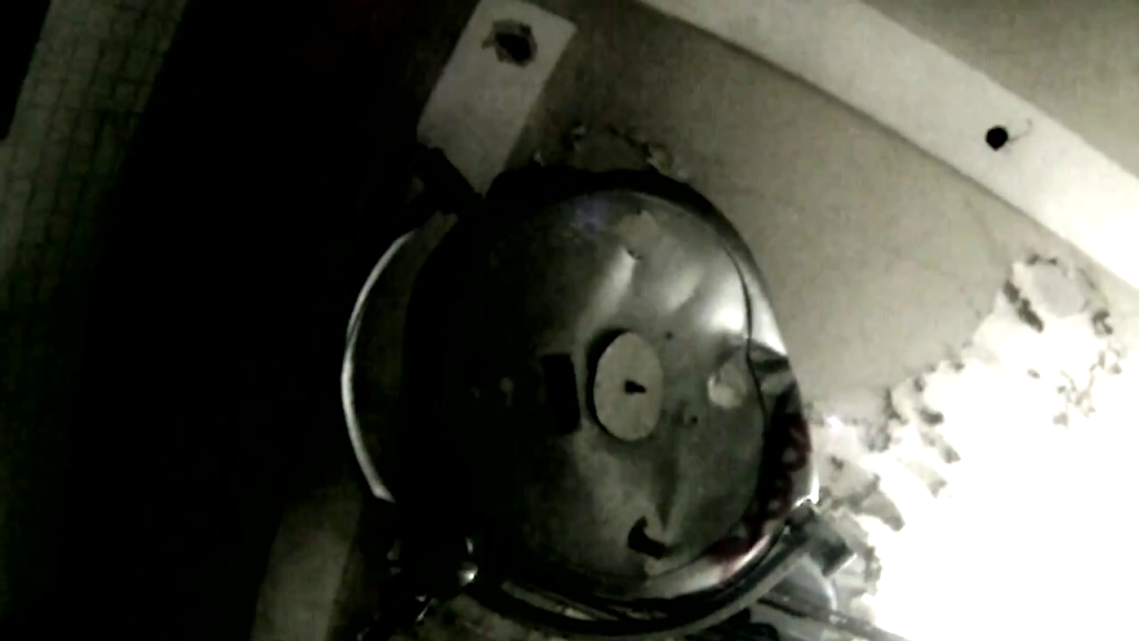 It is shown right after Tim asks TO why he is here. It seems to be moving, and at first reminded me of that beating heart that was shown in one TTA. It seems to be located at the hospital, old equipment maybe? I also find the sound odd the follows Tims question. Is it an distorted answer? At first it just seems like a scream, but then it almost sounds like a voice, heavily distorted. I'll attach it. For those who are more apt in sound editing. is this wave-pattern or what you call it usual, or is it a hint that maybe there is more to be found in this track? "What do you hear?"