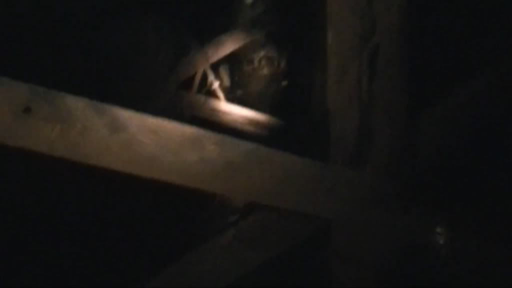 I believe that it was intentional. They see that creature up in the rafters. After the flashlight is on it for a second then it takes off and they take off. To me it kinda looks like a ghoul or a feral vampire.