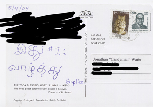 Sorry guys! I totally missed my postcard and it was taken in by assorted pieces of junk mail. Fortunately, Mr. Sapagoo mentioned it in chat and I was able to save it from the bad influence that would have certainly resulted in a life sentence at the landfill... sentencing would have happened on Thursday. After a brief rehabilitation period, it is now happily mingling with a much better crowd of fellow postcards.